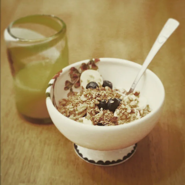 Most mornings my breakfast is oatmeal & coffee...I'm trying to mix it up, but this is a good standby. Old fashioned oats, walnuts, golden flax seed, blueberries, bananas and a few tablespoons of sweet cream. Leave a comment