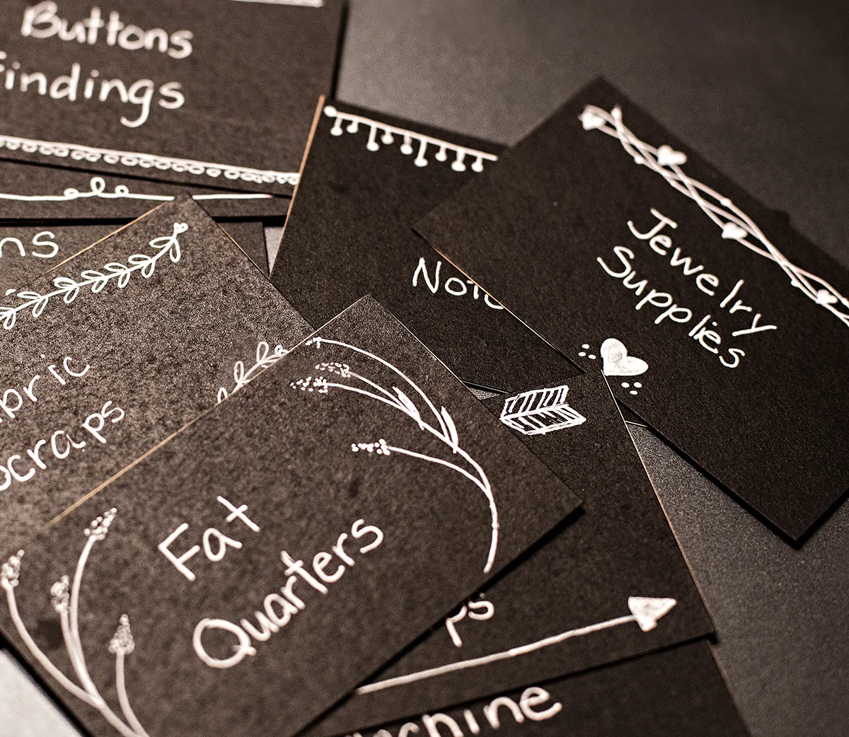 I picked up some cute chalkboard labels, black mini clothes pins and a white pen to help me along. I decided I didn't just want to have plain writing on the labels so I Googled some cute chalkboard doodle ideas and then I just went to town on them.
