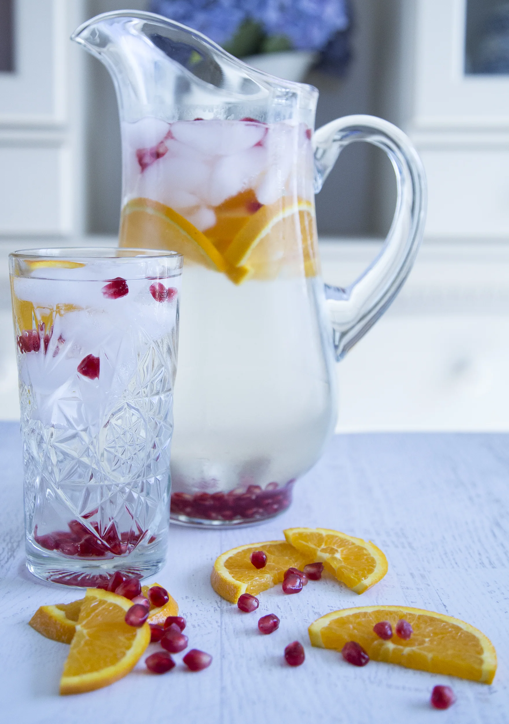 I thought I would share a few of them here for you. I still make a gallon of infused water each morning and continue to fill the pitcher up as I empty it each day. Then I start fresh the next morning. I don’t have photos for all of these, but you will get the idea. If you want to mix it up a little (sometimes I need some bubbles) I will do the same fruit combos in a glass and pour Pellegrino over it.